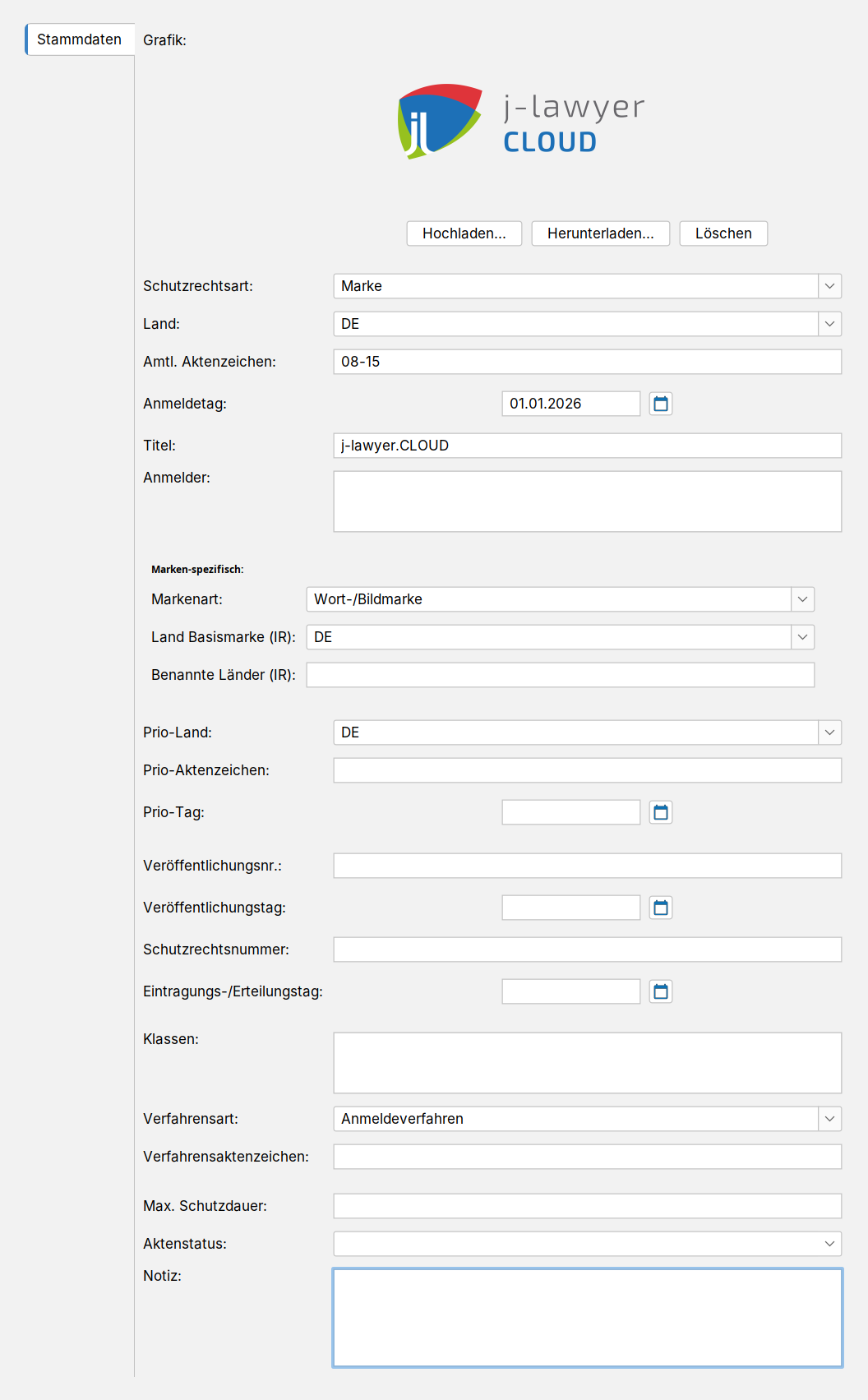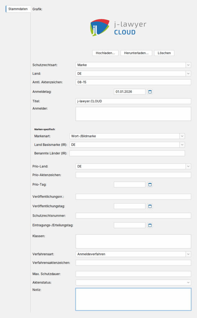 neues Falldatenblatt gewerbliches Schutzrecht Recently updated !Dieser Eintrag wurde veröffentlicht unter Funktionalität und gekennzeichnet mit Falldaten Falldatenblatt am 5. Januar 2026 von j-lawyer.org Ab sofort steht ein neues Falldatenblatt zur Pflege von Daten rund um gewerbliche Schutzrechte. Wie bei allen Falldaten könne Platzhalter verwendet werden, um die Daten automatisch in Dokumente zu transferieren.